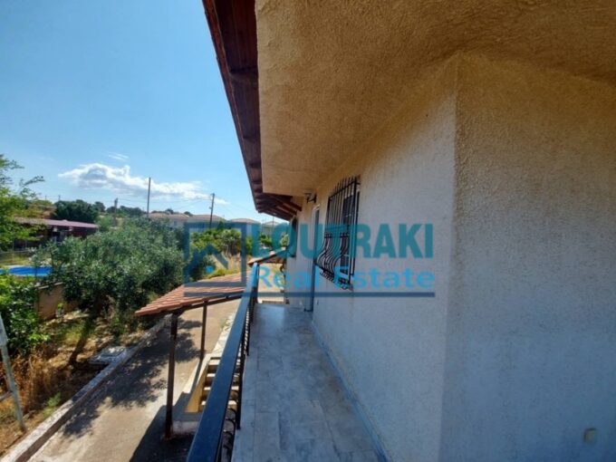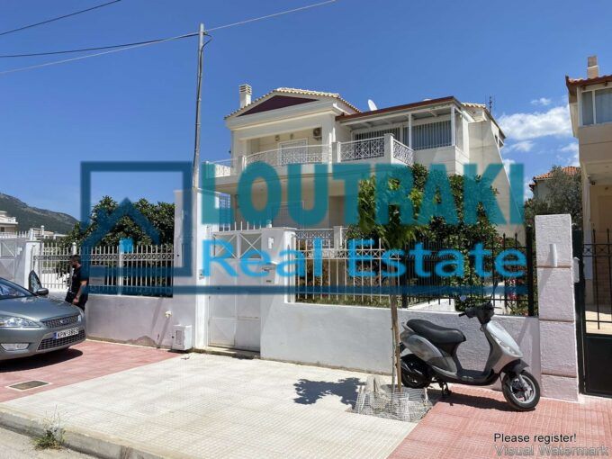 Η κατοικία, κατασκευής 2000, βρίσκεται μόλις 2,5 χλμ. από το κέντρο του Λουτρακίου και 2.000 μ. από τη θάλασσα, προσφέροντας τον ιδανικό συνδυασμό εύκολης πρόσβασης και ιδιωτικότητας. Από το ακίνητο απολαμβάνει κανείς ανεμπόδιστη πανοραμική θέα στο βουνό και τη θάλασσα, εικόνα που χαρίζει αίσθηση γαλήνης και ποιότητας ζωής καθ’ όλη τη διάρκεια του έτους.